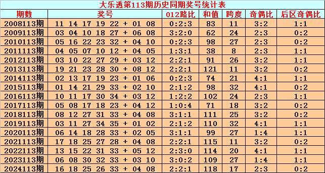 综上所述,大乐透第2025113期前区012路比参考0:3:2。